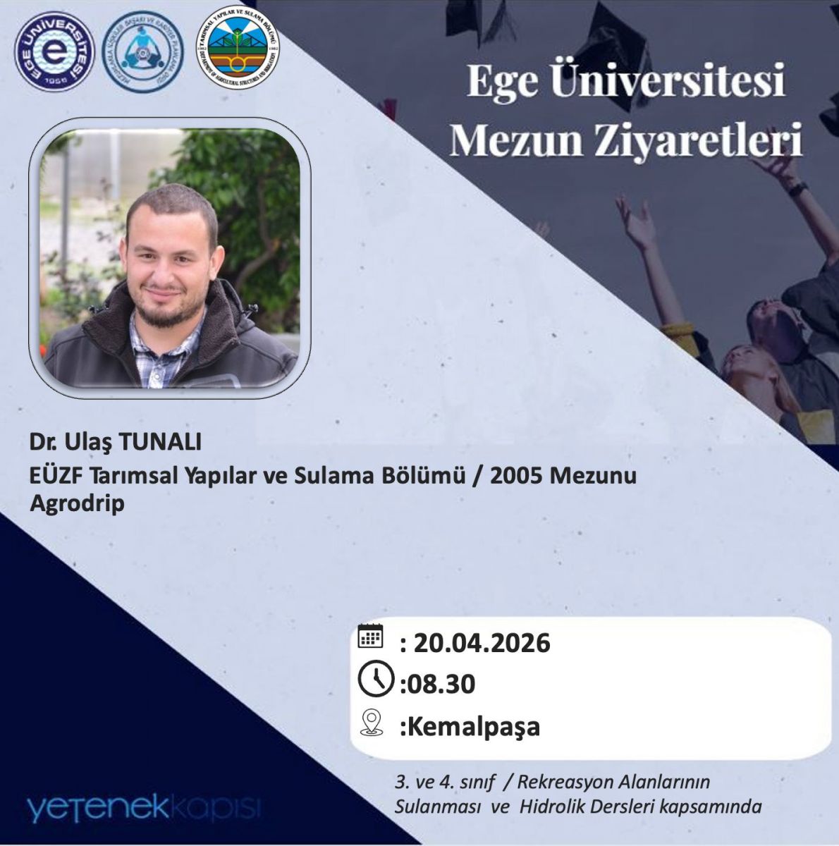 Prof. Dr. M. Ali UL hocamızın rehberliğinde gerçekleştirilen teknik gezide, öğrencilerimiz sahadaki uygulamaları yerinde inceleme fırsatı bulmuştur. Ev sahipliği için AgroDrip, Tayfur Su ve Alara firmalarına teşekkür ederiz.